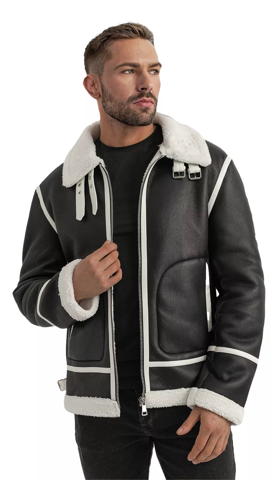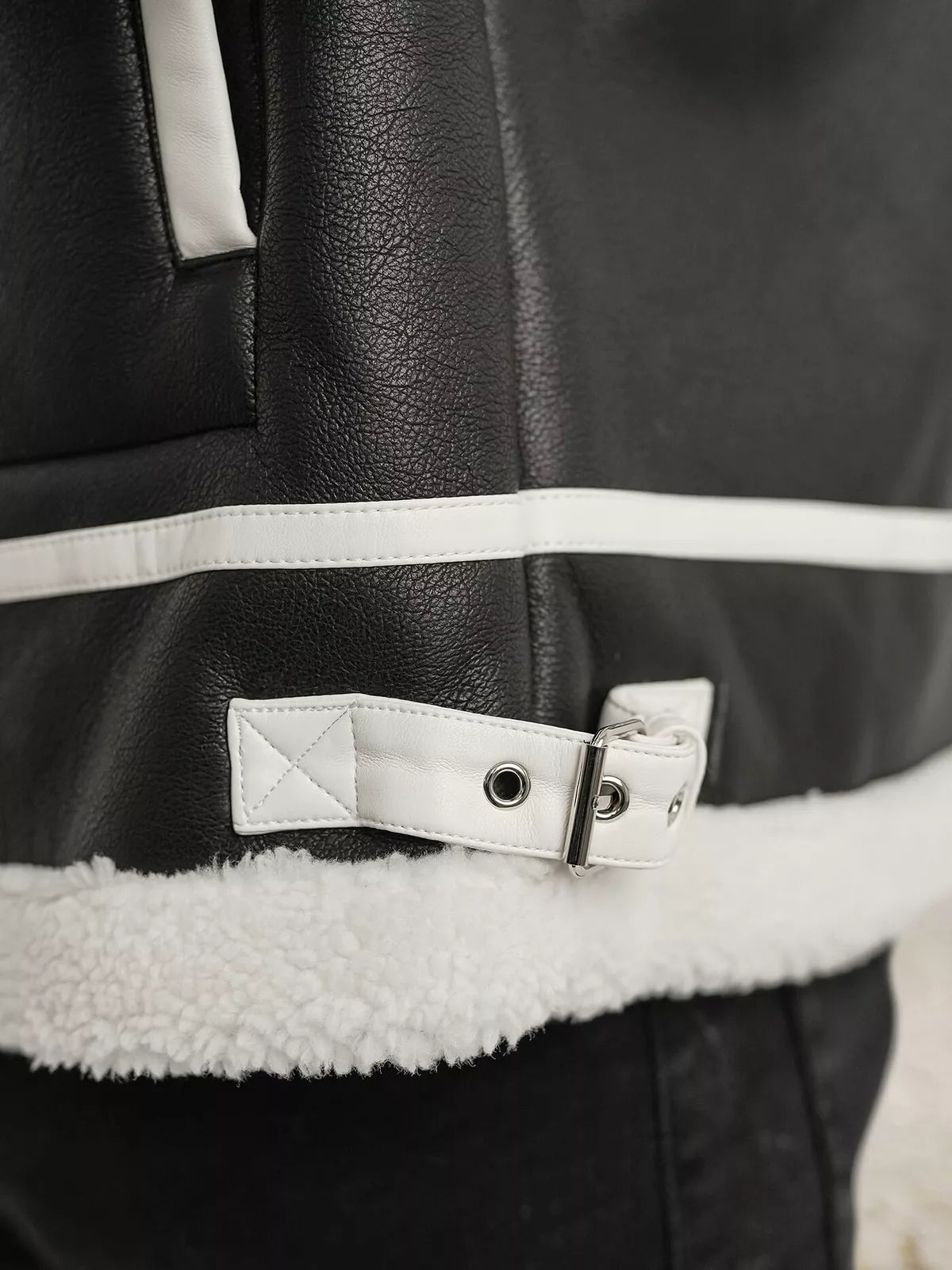 Vīriešu ādas jaka ar mākslīgās kažokādas oderi