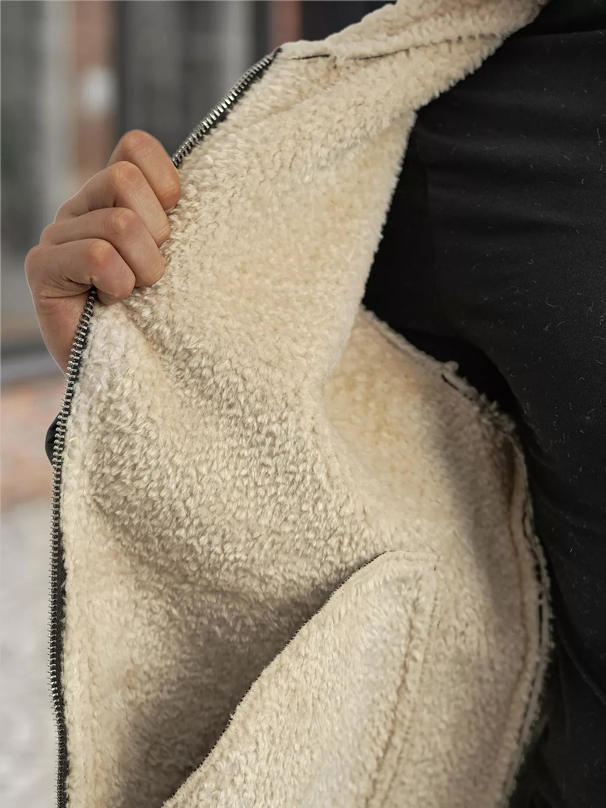 Izgatavots no augstas kvalitātes eko ādas, kas izskatās grezni un ir izturīga pret vēju un mitrumu. Iekšpuse ir pārklāta ar mīkstu oderi, un mīksta kažokādas apkakle nodrošina papildu siltumu un izcilu komfortu aukstākās dienās. Divas sānu kabatas ar rāvējslēdzējiem un regulējamām siksnām pie aprocēm uzsver praktiskumu un vīrišķīgo raksturu.