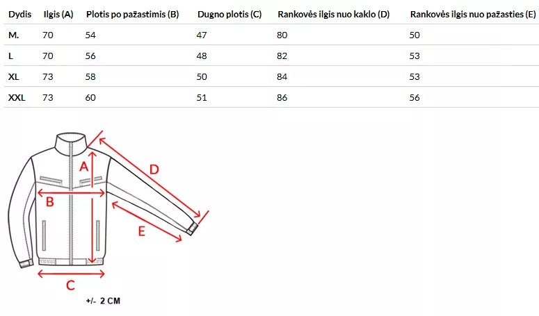 Izmēru tabulu varat atrast fotogalerijā.