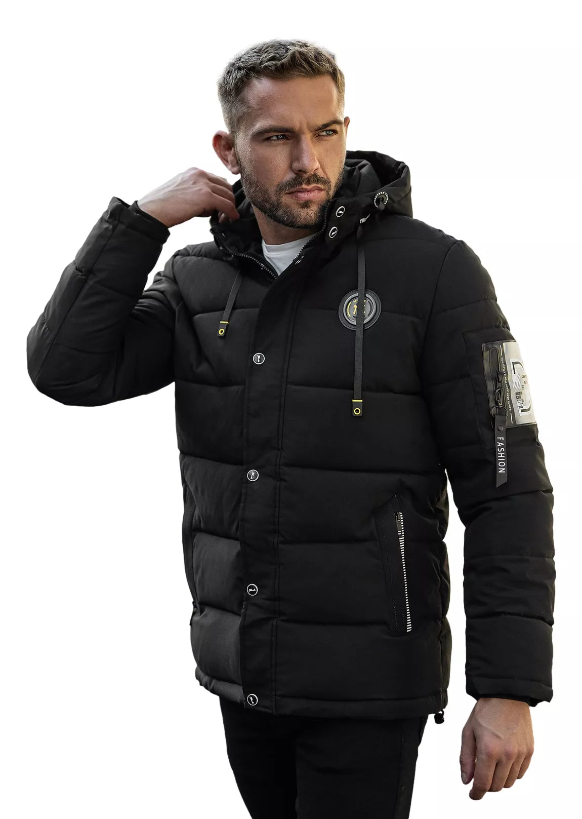 Vīriešu stepēta ziemas jaka. Rāvējslēdzēja aizdare, noņemama kapuce un stilīgas sānu kabatas. Augsta apkakle palīdzēs justies silti jebkuros laikapstākļos.