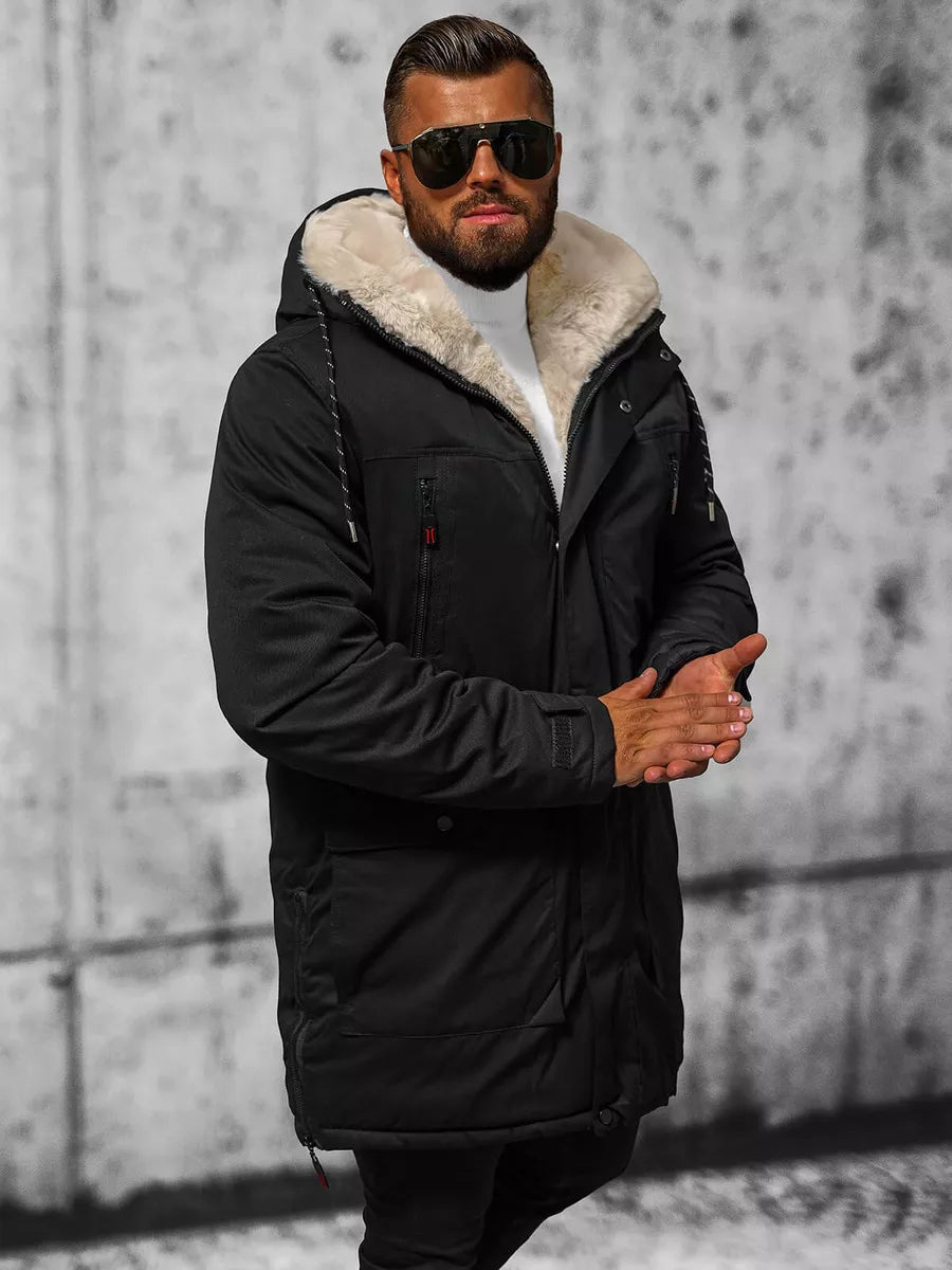 Ziemas jaka ar kapuci ir lieliska izvēle aukstā laikā. Tās kažokādas odere nodrošina siltumu un komfortu pat visskarbākajos laikapstākļos. Jaka ir aiztaisāma ar ērtu rāvējslēdzēju, un sānu kabatas nodrošina vietu rokām vai nelieliem priekšmetiem. Modele, kura valkā L izmēru, ir 182 cm gara un sver 87 kg, tāpēc šī jaka ir piemērota visu izmēru cilvēkiem. Izmēru tabulu varat atrast fotogalerijā, tāpēc noteikti to pārskatiet, izvēloties izmēru. Šī jaka ir izgatavota no augstas kvalitātes 100% poliestera un 100% poliuretāna, kas nodrošina izturību un mitruma izturību. Ideāla izvēle gan ikdienas, gan aktivitātēm brīvā dabā, tā arī lieliski sader ar citiem jūsu garderobes elementiem, tāpēc neatkarīgi no tā, vai tā ir pastaiga parkā vai izbrauciens uz pilsētu, jūs jutīsieties stilīgi un ērti.