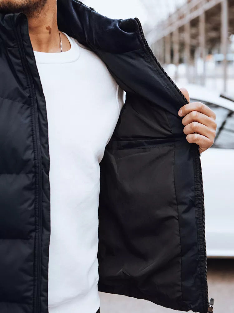 Vīriešu stepēta veste bez kapuces, ērta piegriezuma. Divas ārējās kabatas ar rāvējslēdzējiem, viena iekškabatiņa.