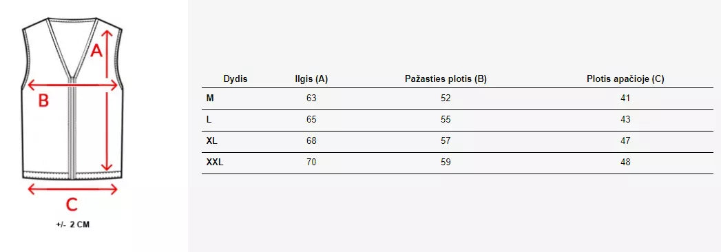 Stepēta veste ar kapuci. Divas ārējās kabatas ar rāvējslēdzēju. Divas iekškabatas. Kapuce nav noņemama.