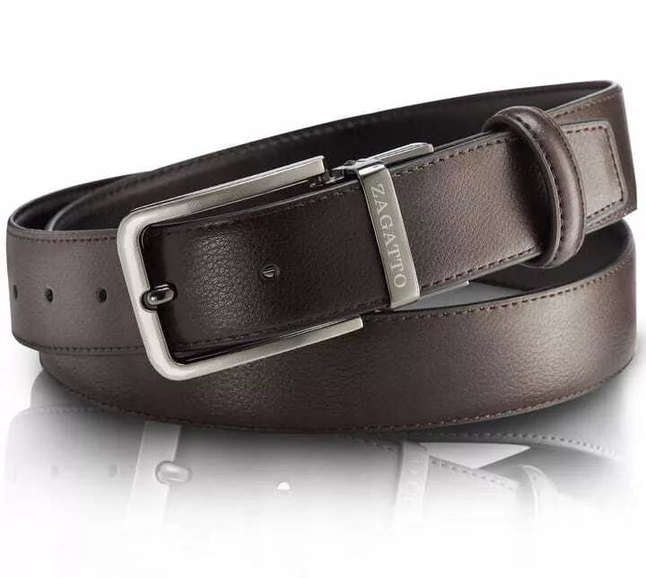 ĪSUMĀ: Zīmols: Zagatto Materiāls: īsta āda - graudaina āda Siksniņas platums: 3,3 cm Siksniņas biezums: 0,2 cm Sprādze: metāla, rotējoša Sprādzes izmēri: 5,5 cm x 4,4 cm SVARĪGĀKAIS VĪRIEŠU AKSESUĀRS