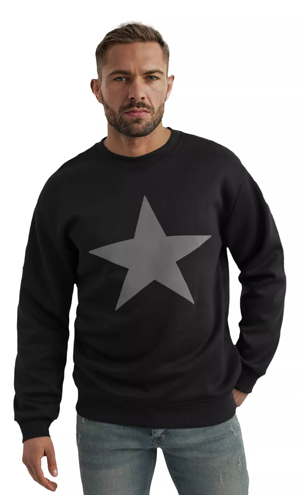 Moderns un ērts vīriešu džemperis ar zvaigznes motīvu ir stila un komforta apvienojums vienā. Unikālais minimālistiskais dizains ar lielu zvaigznes simbolu priekšpusē piešķir šim modelim raksturu un urbānā stila izpausmi.