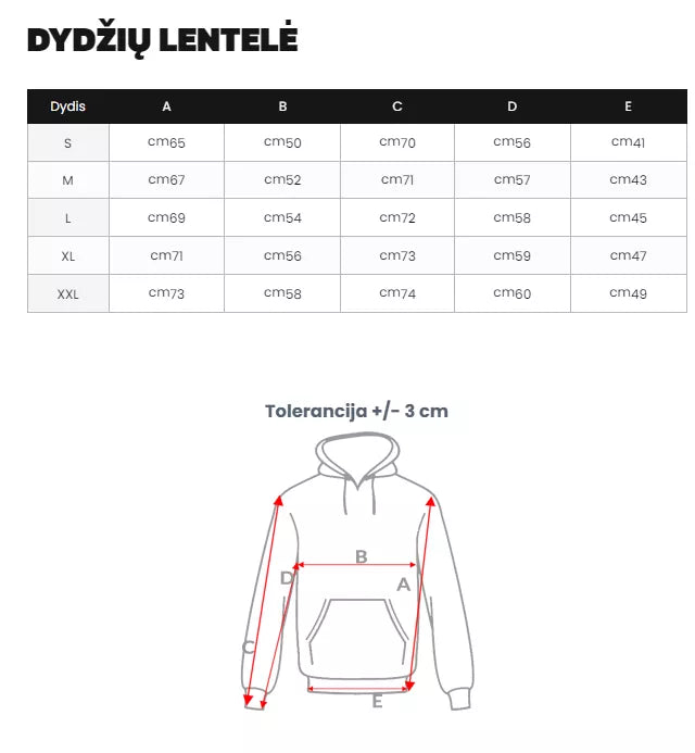 Izmēru tabulu varat atrast fotogalerijā.