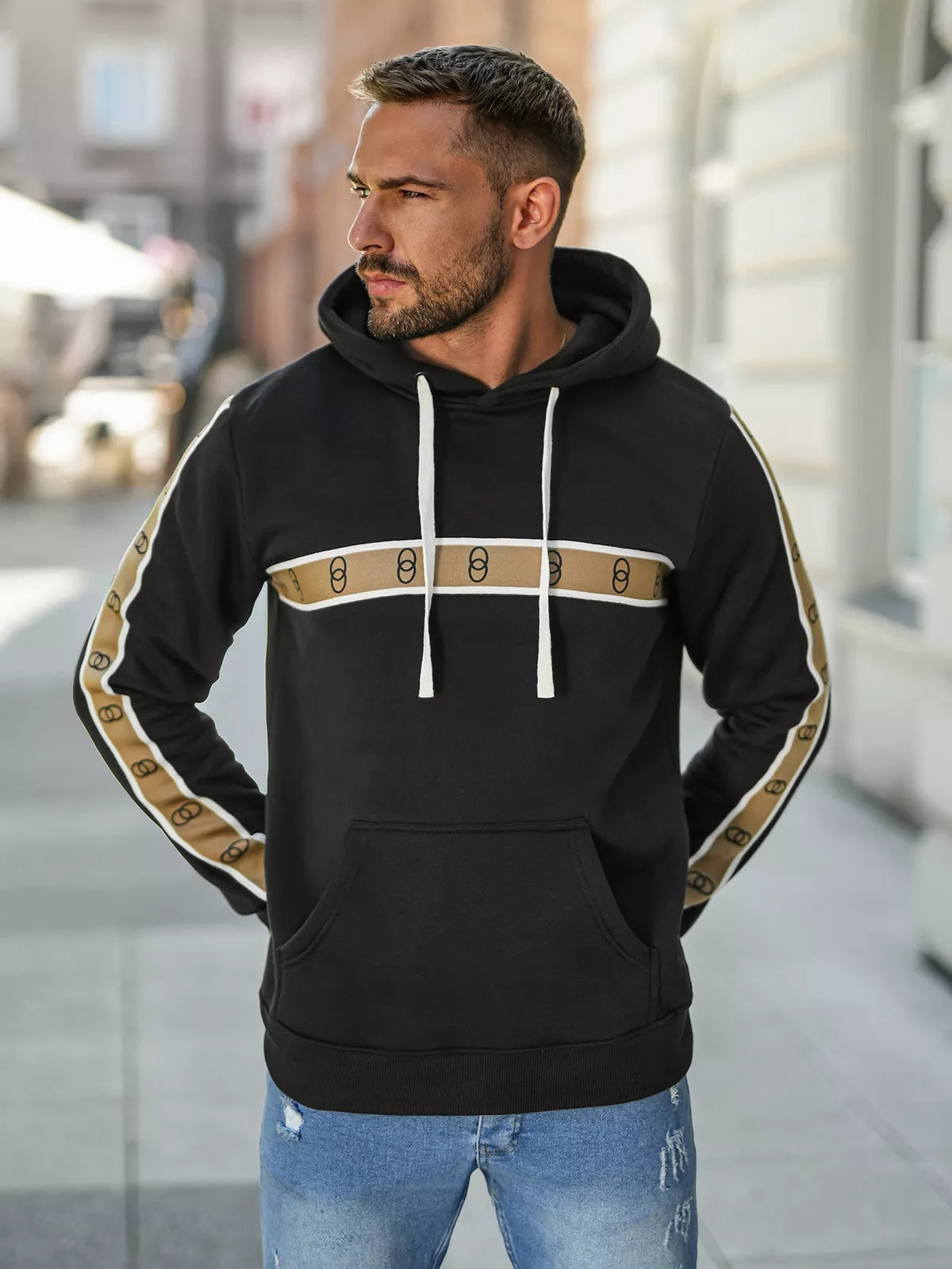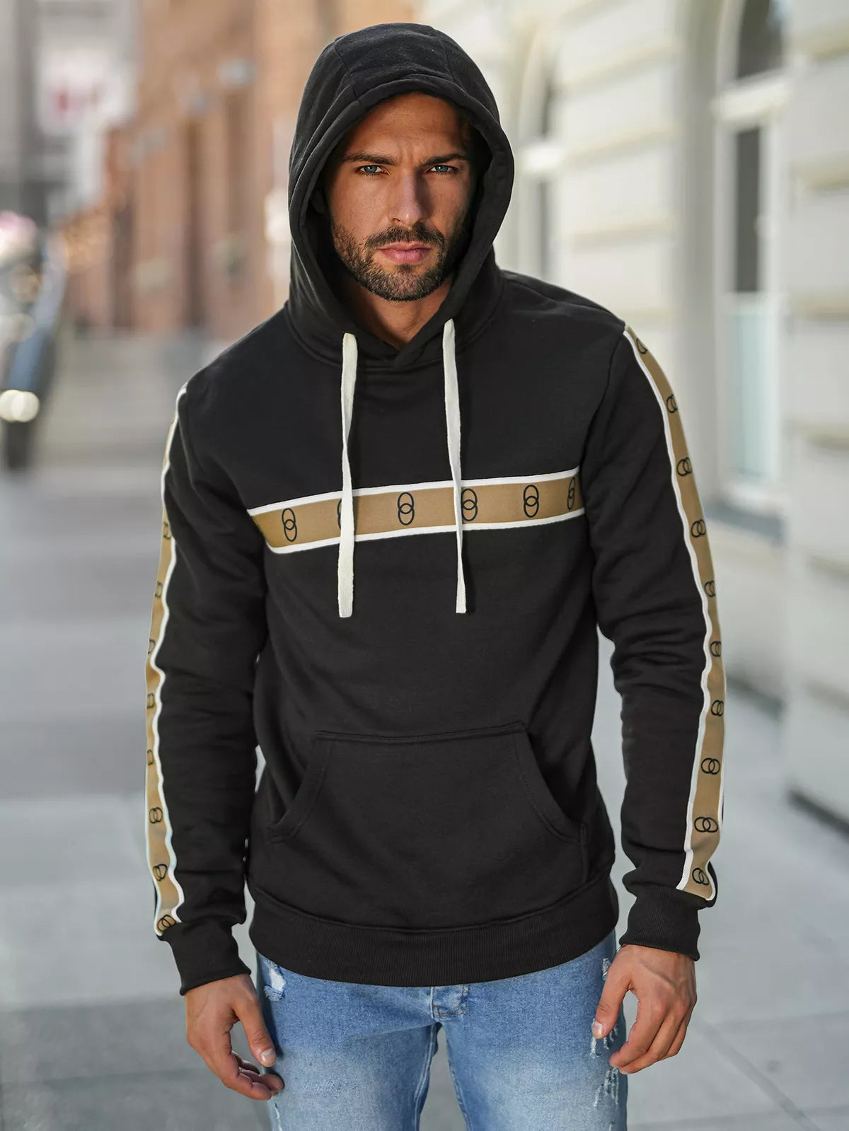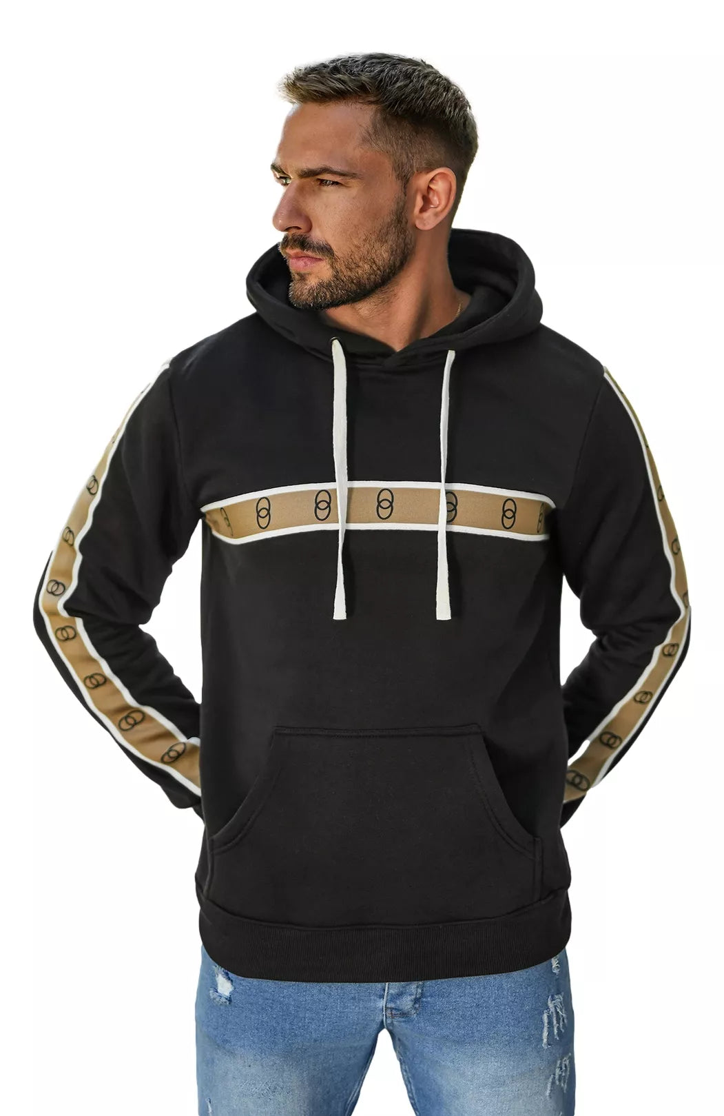 Vīriešu kapučjaka - ērts, moderna dizaina modelis, kas piemērots gan ikdienai, gan atpūtai. Izgatavota no mīksta materiāla, kas nodrošina komfortu. Priekšpusē ir dekoratīva horizontāla svītra ar stilīgiem elementiem, kas piešķir tai unikalitāti. Mežģīnes ir kontrastējošā krāsā, un uz piedurknēm ir pieskaņotas lentīšu detaļas. Džemperim ir ietilpīga priekšējā kabata, garas piedurknes un ērta kapuce, kas noderēs vēsākās dienās. Tā labi sader ar džinsiem vai treniņbiksēm, padarot to par universālu izvēli aktīvam pilsētas stilam.
