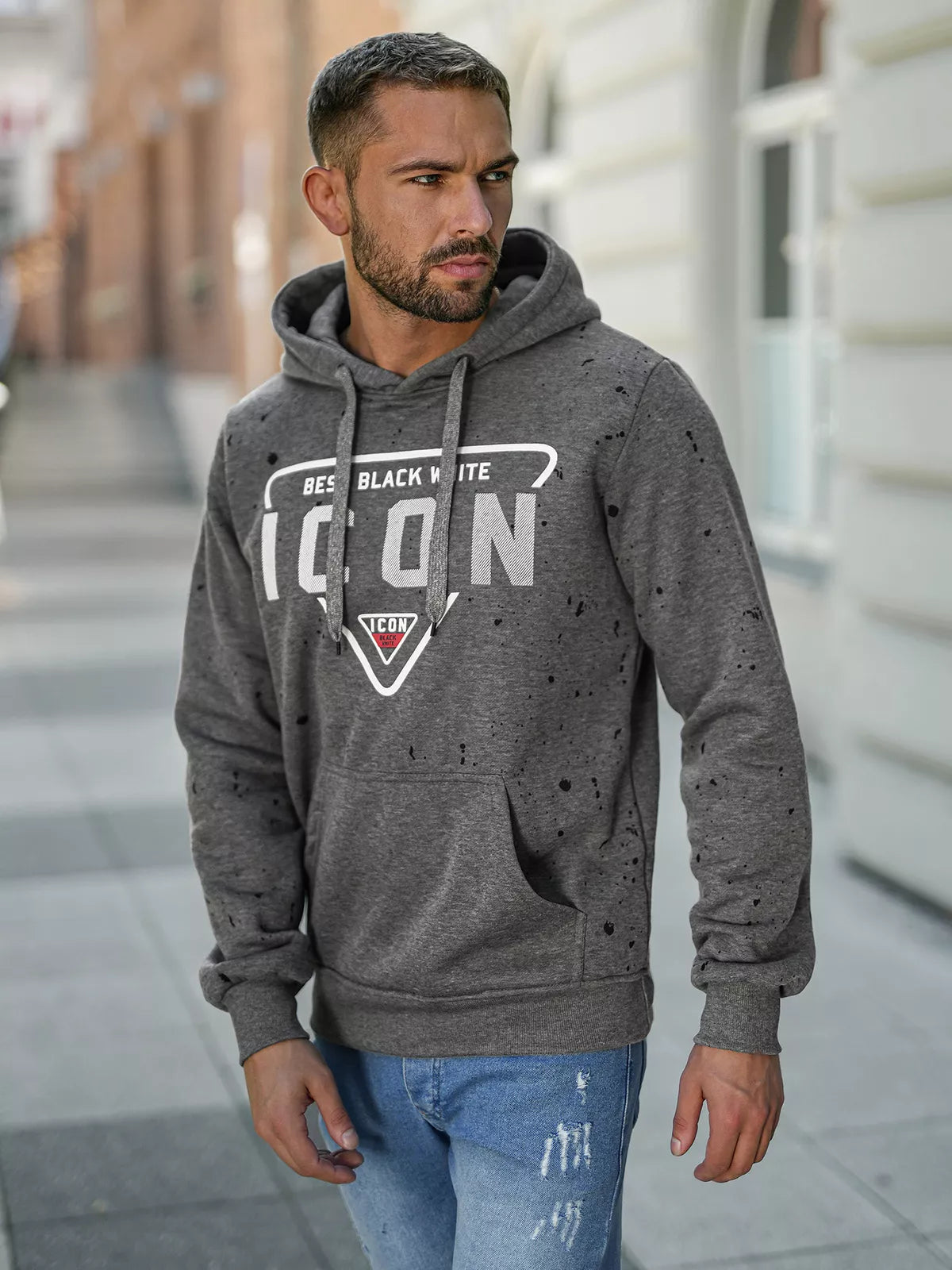 Unikāla dizaina vīriešu kapučjakas krekls, radīts mūsdienīgam un pārliecinātam vīrietim. Audums ir dekorēts ar "punktiņiem", kas piešķir modernu "streetwear" stila tēlu. Priekšpusē - spilgts uzraksts "ICON" un trīsstūrveida logotips ar saukli "BEST BLACK WHITE" , kas uzsver ekskluzivitāti.