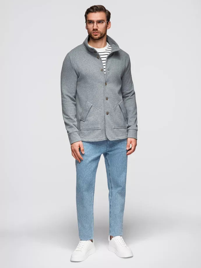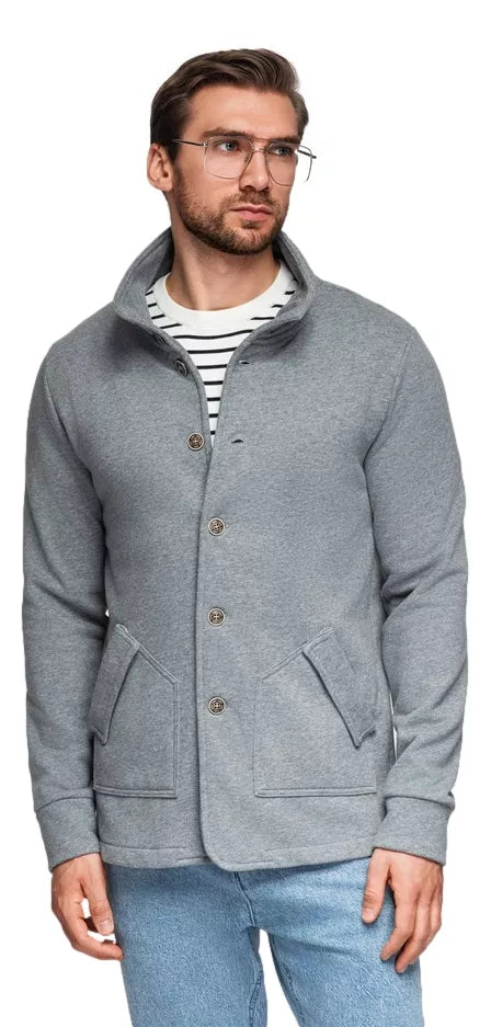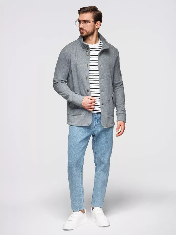 Modelis ir aiztaisāms ar pogām visā garumā, tam ir divas praktiskas priekšējās kabatas ar atlokiem un neuzkrītošs paaugstināts kakla dizains, kas piešķir tam atšķirīgu izskatu. Mīkstais, patīkamais materiāls nodrošina komfortu visas dienas garumā, un gaiši pelēkā krāsa ir viegli kombinējama ar dažādiem apģērba stiliem.