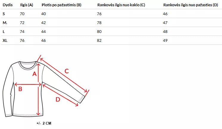 Izmēru tabulu varat atrast fotogalerijā.