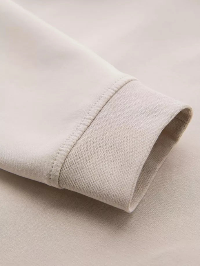 Ir divas priekšējās kabatas ar nelieliem dekoratīviem rakstiem, apakšdaļa un piedurknes ir dekorētas ar elastīgu apmali. Mums ir arī bikses, kuras varat papildināt ar šo džemperi.
