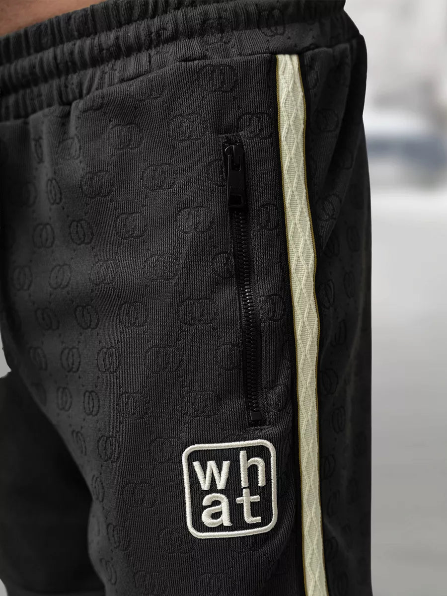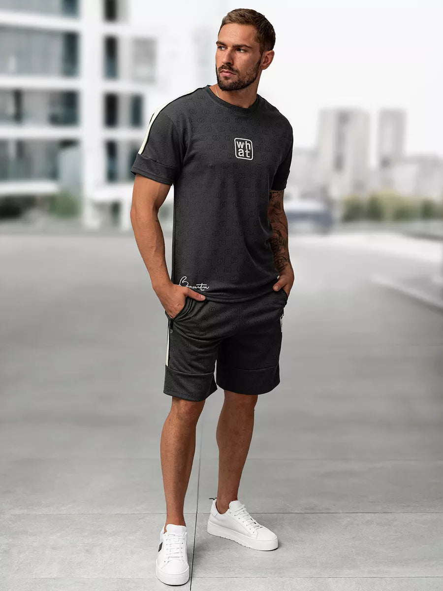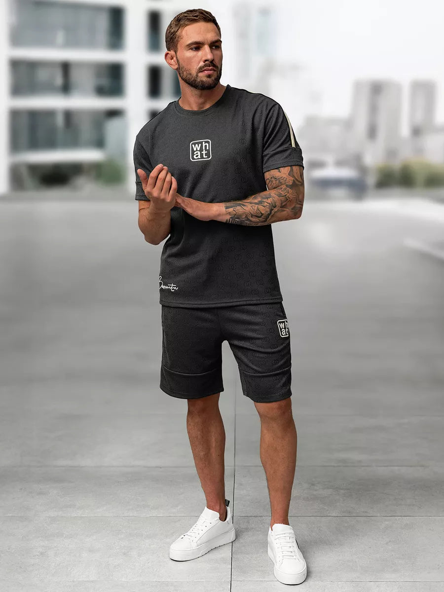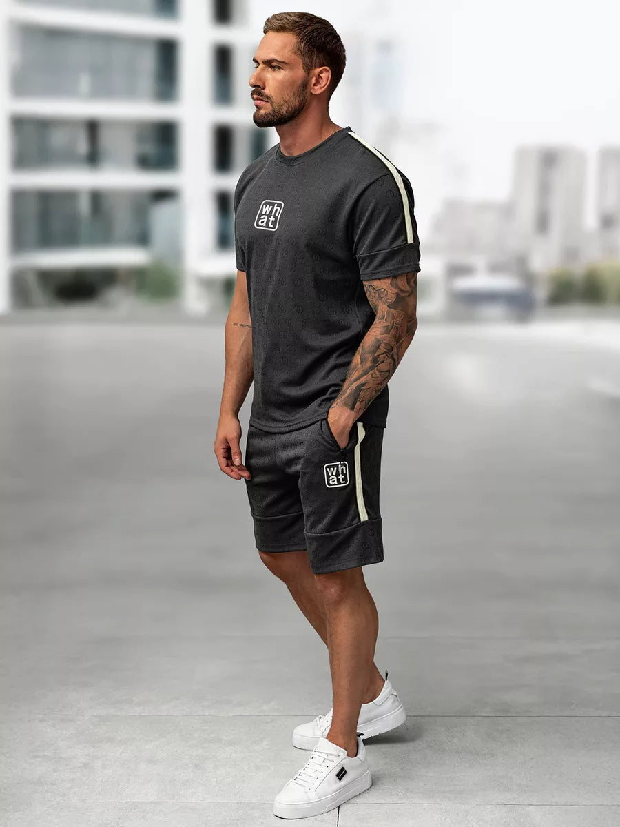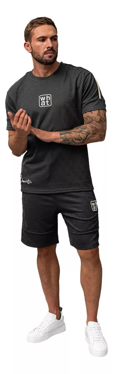 T-krekls ir ar minimālisma uzrakstu "what" uz krūtīm un baltu lenti gar plecu. Šorti ir ar kabatām un sānu dekoratīvu lenti, kas lieliski sader ar T-kreklu. Komplekts ir ideāli piemērots gan aktīvai atpūtai, gan ikdienas stilam.