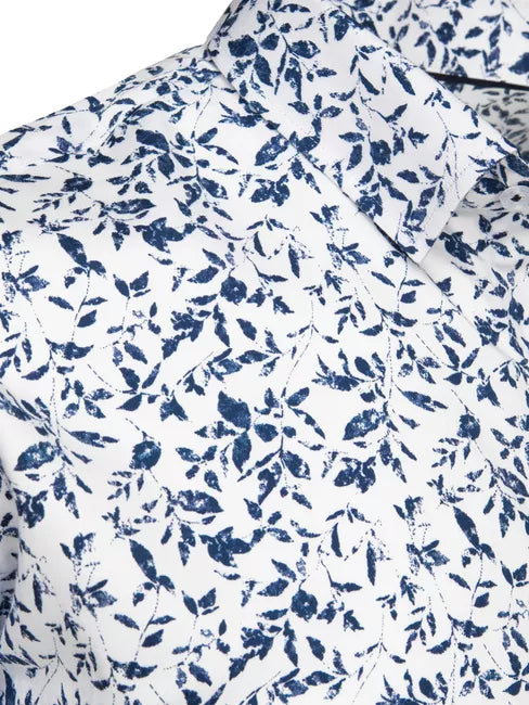 Vīriešu ikdienas krekls ar garām piedurknēm, kas izgatavots no viegla materiāla, ir lieliska izvēle pavasarim. Modelis izceļas ar klasisku apkakli un pievilcīgu stilizētu lapu rakstu. Pieguļošais dizains lieliski pielāgojas ķermenim, un regulējamās aproces nodrošina komfortu. Lieliski piemērots smart casual stilam.