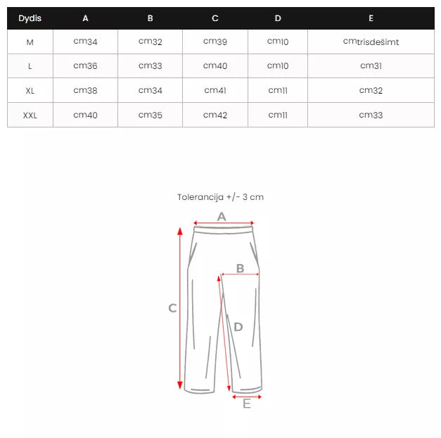 Izmēru tabulu varat atrast fotogalerijā.