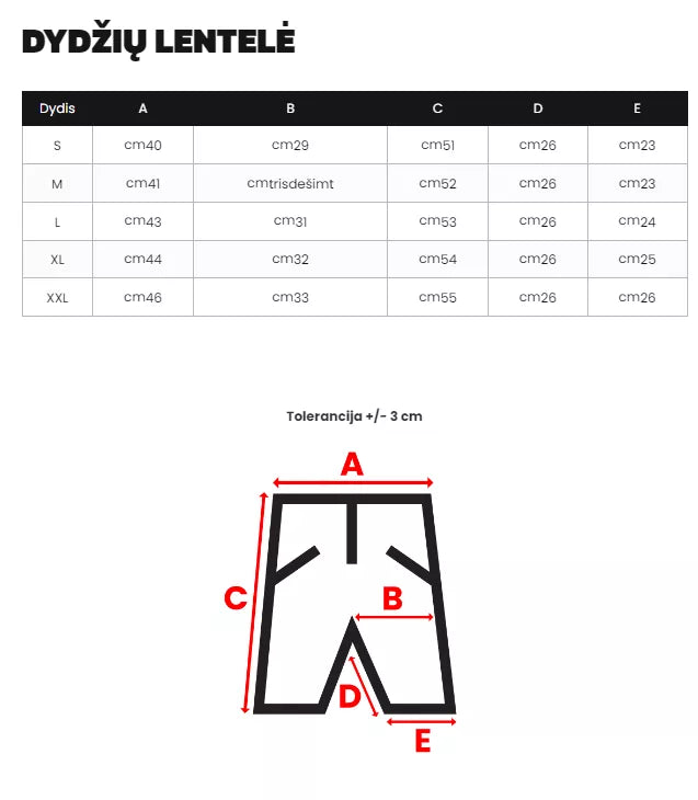 Izmēru tabulu varat atrast fotogalerijā.
