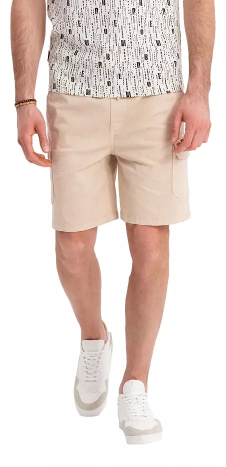 Moderna dizaina kravas šorti, izgatavoti no kokvilnas auduma ar pievienotu elastānu. Brīvāks piegriezums un platas bikšu staras nodrošina kustību brīvību, savukārt elastīgā jostasvieta ar aukliņu ļauj pielāgot piegriezumu individuāli. Praktiskas kravas kabatas un funkcionālas detaļas, piemēram, adīti ielaidumi, zīmola etiķete un elastīgas aukliņas aizmugurē, uzsver šortu utilitāro raksturu. Ideāla izvēle ikdienas vasaras stilam.