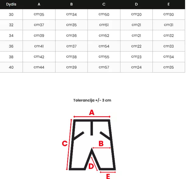 Izmēru tabulu varat atrast fotogalerijā.