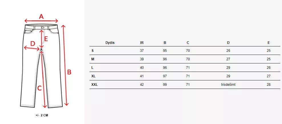 Izmēru tabulu varat atrast fotogalerijā.