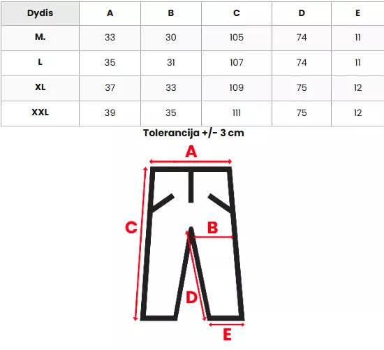 Izmēru tabula fotogalerijā.