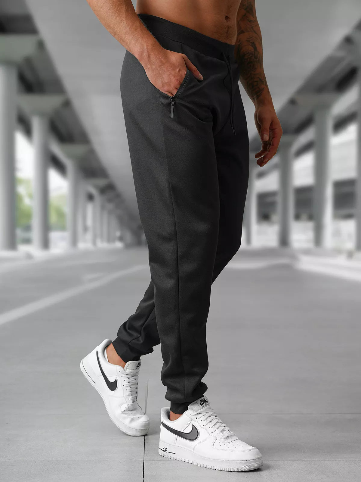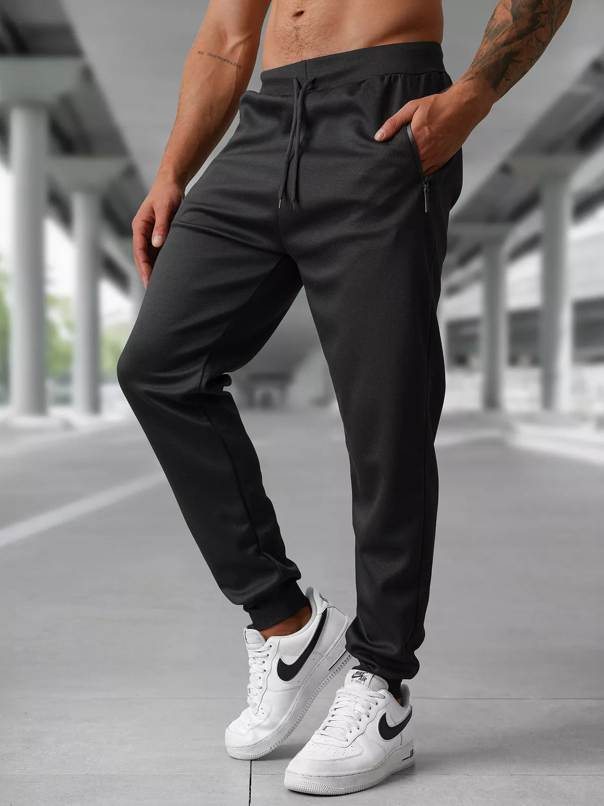 Vīriešu sporta bikses ar sašaurinātu piegriezumu. Izgatavotas no ērta, viegli kopjama materiāla, kas nodrošina komfortu gan sportojot, gan ikdienā. Taisns modelis ar sašaurinātām bikšu galām. Elastīga jostasvieta ar regulējamu aukliņu. Sānu kabatas ar rāvējslēdzējiem. Lieliski piestāv sporta apaviem vai ikdienas apģērbam, piemērotas gan treniņiem, gan ikdienas valkāšanai.
